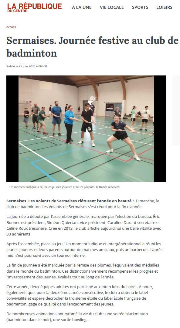 Article La République du Centre paru le 25 juin 2025